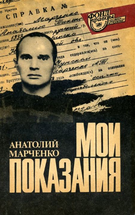 Первая книга Анатолия Марченко – "Мои показания" был написана им через год поле выхода из лагерных ворот. Попав в Москву и познакомившись со многими участниками формирующегося в ту пору советского диссидентского движения, он с каждым днём всё более укреплялся в мысли о том, что не имеет права молчать о том, что он пережил и что своими глазами видел. Он считал, что обязан рассказать об этом и своим согражданам, пребывающим в полнейшем неведении относительно того, в какой стране они живут, и всему миру – всем, кто захочет ознакомиться с его исповедью.