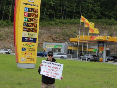 Во Владивостоке 13 июня прошли одиночные пикеты против подорожания цен на бензин. Об этом написали на странице группы "Команда Навального Владивосток".