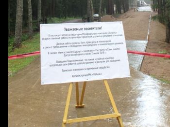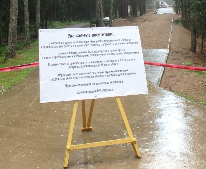 Шестое. Весной 2018 года В.И. Матвиенко вместе с благодетелем открывала, наконец созданную экспозицию и скульптурно-архитектурный ансамбль в части захоронений советских людей. Были проложены деревянные мостки, чтобы высокие особы и сопровождающие лица могли пройти. Прошли, поклонились, положили букеты красных роз или гвоздик — не важно. Современный плакат гласит, что брусчатка будет положена к 15 июля и мемориал будет опять открыт.