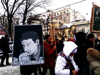 В Москве 19 января проходит антифашистская демонстрация посвященная памяти журналистки Анастасии Бабуровой и адвоката Станислава Маркелова. Об этом сообщает корреспондент Каспаров.Ru.