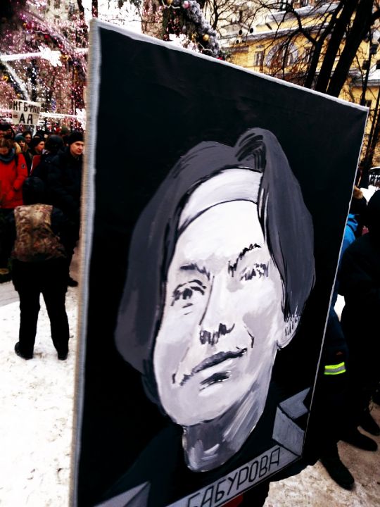 Абурова и Маркелов были убиты в 2009 году за политические взгляды. Они были борцами с нацистским режимом в России и открыто демонстрировали это.