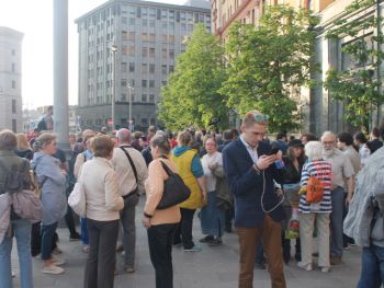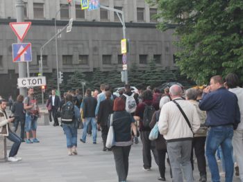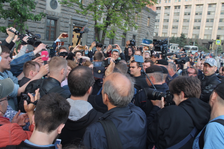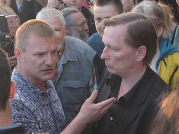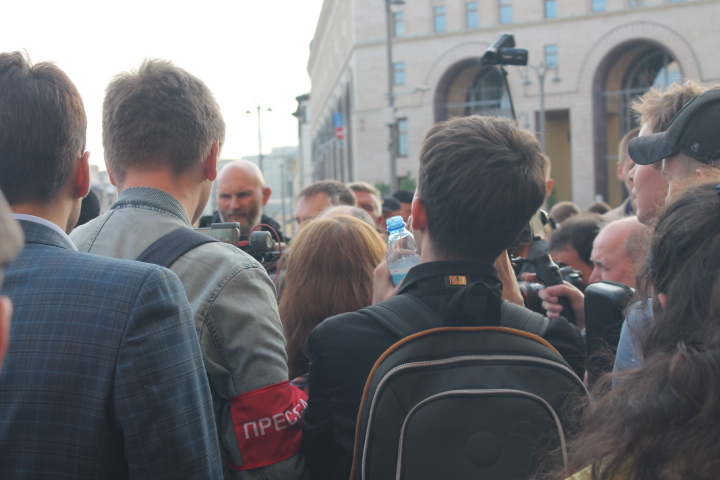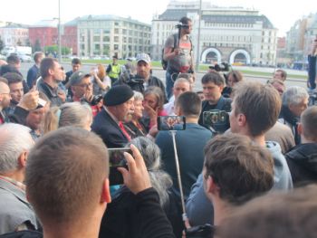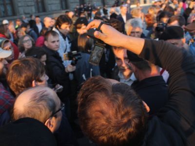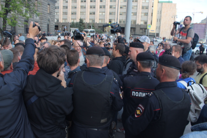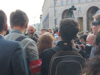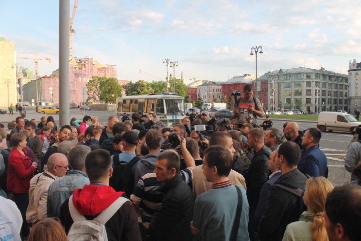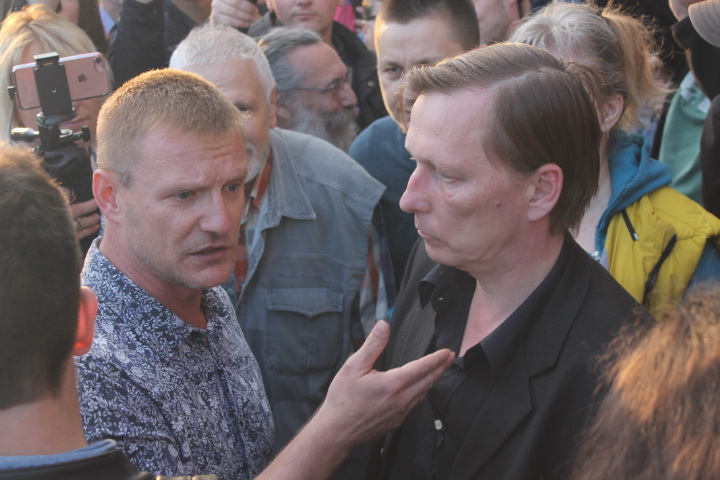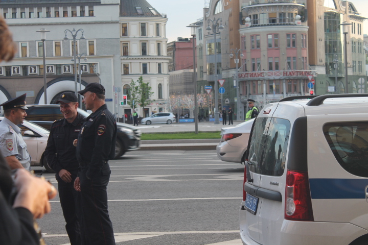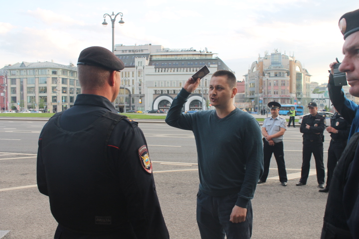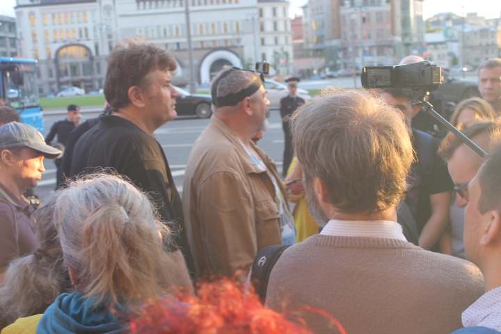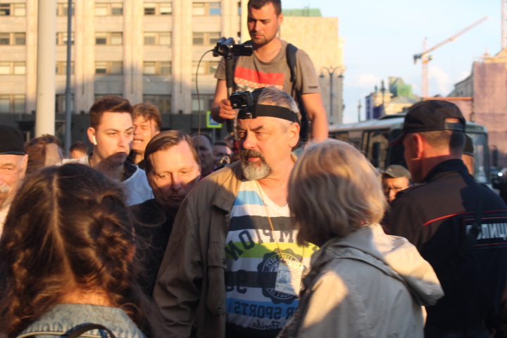 Несколько раз полицейские требовали по громкоговорителю уйти с проезжей части — люди там оказывались в тот момент, когда кого-то "грузили" в автозак. На площади в основном задержали участников SERB — Тарасевича, Кулакова, Рыбакова и Петрунько, Брунеля. Они, как обычно, пытались устроить потасовку, но в этот раз не вышло — полиция добросовестно исполнила свой долг.