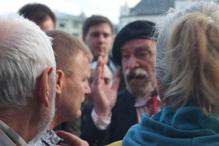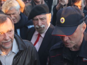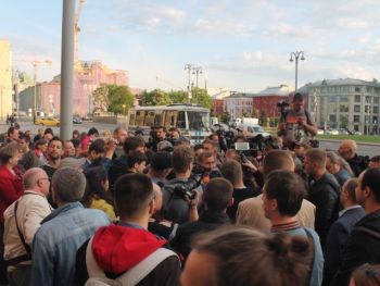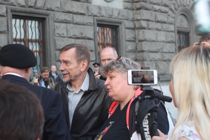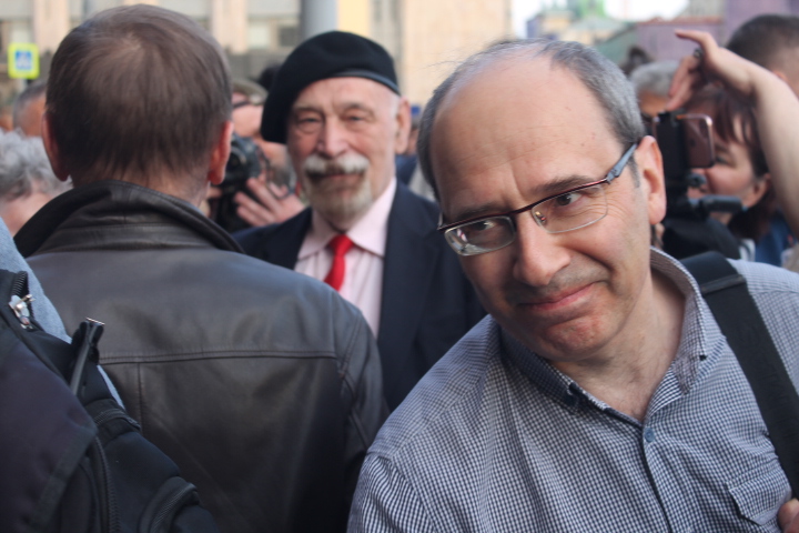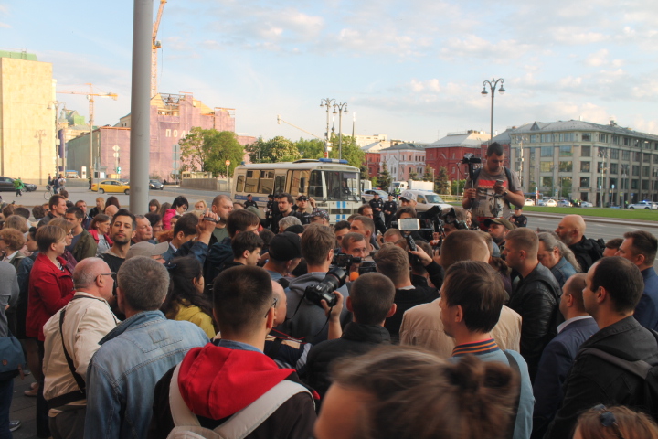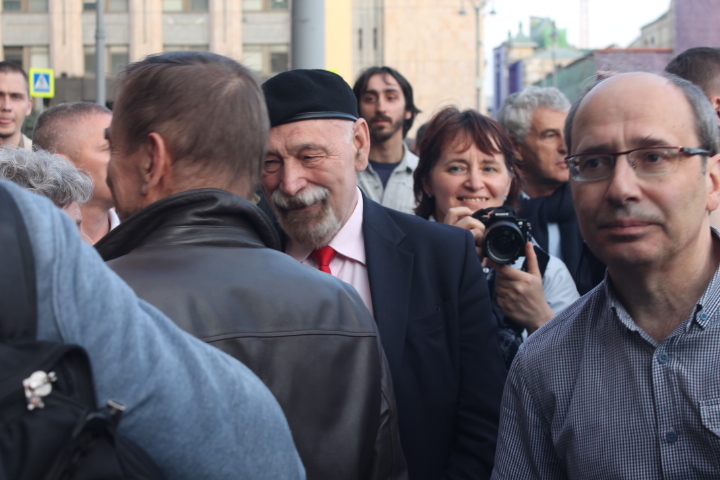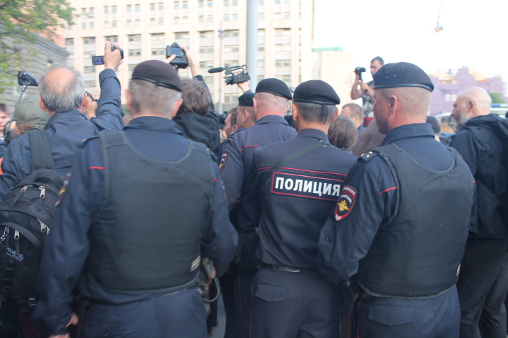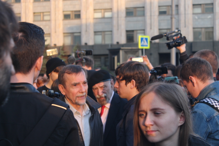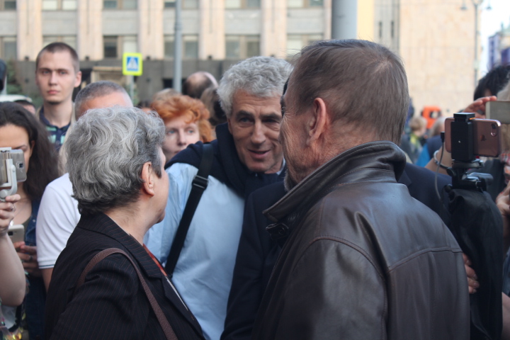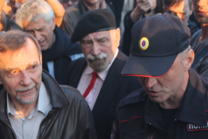 Сход "В защиту нового поколения" длился около двух часов. За это время к организатору акции Льву Пономареву несколько раз подходили сотрудники полиции. "Лев Александрович, пора заканчивать", — сказал один из сотрудников правоохранительных органов. "Мы давно не виделись, вот стоим просто и общаемся", — улыбаясь, ответил правозащитник. На этом полицейский сдался и ушел обратно к своим коллегам.