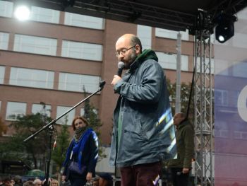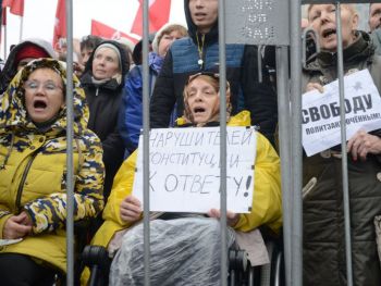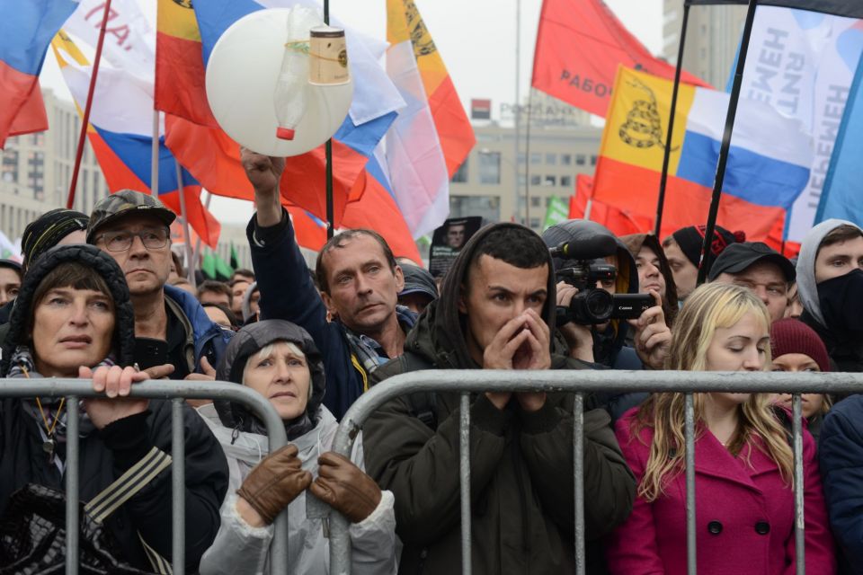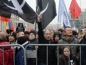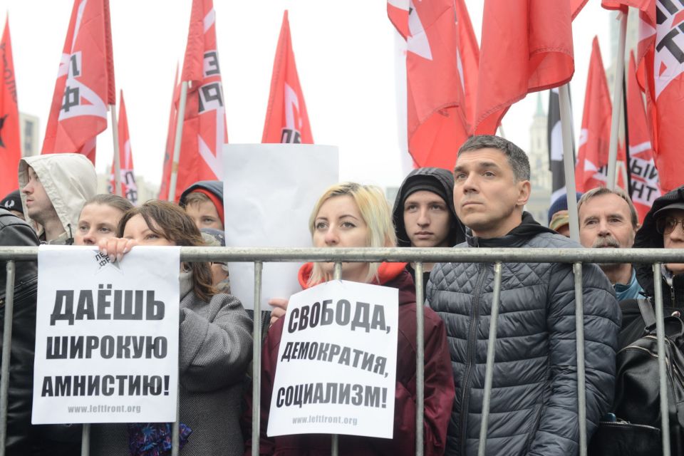 Еще перед митингом приятные молодые ребята раздавали плакаты с лицами фигурантов "московского дела". Кто-то пришел со своими плакатами: большими транспарантами и маленькими листочками с написанным от руки текстом. Возле сцены столпились члены разных партий: рядом с представителями левых движений мирно соседствовали либертарианцы. Традиционно развивались флаги "Солидарности" и "Яблока".