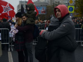 Непосредственно у сцены стояли сторонники Алексея Навального. Время от времени его самого окружали журналисты. Он что-то говорил им, улыбался. Когда ближе к концу митинга он выступил, возле оградок выстроился ряд "эшников". Были рядом и те, кого на акцию явно согнали — дружинники. На кой они сдались тут, не особо ясно. А вот полицейских было относительно мало, и они даже помогали организаторам выводить сомнительных личностей. Среди таковых оказались и некие девушки, которые отказались признаться, как попали к сцене без бейджей.