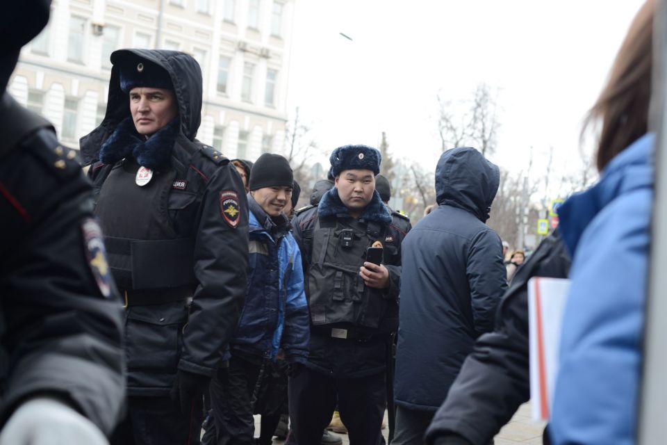 Тем временем сотрудники Центра "Э" снимали на телефоны выходящих из метро людей. Вокруг Пушкинской и в ближайших переулках стояли автозаки, полицейские машины и прочий транспорт силовиков. Количество ОМОНа было как при летних протестах 2019 года.