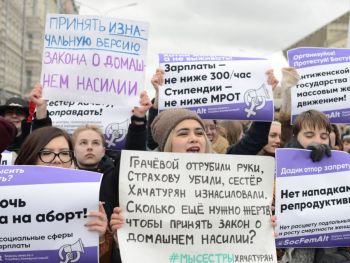 За полчаса до начала шествия у рамок скопилась внушительная очередь. Полицейские тщательно проверяли сумки, содержимое бутылок, а также просили расстёгивать верхнюю одежду. Видимо, боялись, что кто-то может пронести "неподходящий" плакат. Плакаты, как обычно, проходили проверку в отдельном шатре.