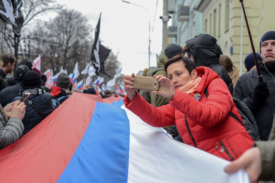 Уже за пару часов до начала сборов было сложно попасть на Пушкинскую площадь — именно оттуда должен был стартовать марш. Дороги были перекрыты. Добираясь до места начала на автобусе, я услышала, что транспорт сократил маршрут. Другие пассажиры стали спрашивать, почему изменился маршрут, кто-то ответил, что это "в связи с митингом в память об убитом политике". Однако вспомнить имя политика этот человек не смог. Выслушав ответ, пассажиры добавили: "Ну ладно, пройдемся". И никаких возмущений о том, что "гражданам мешают передвигаться".