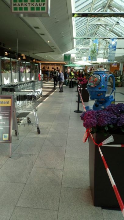 Вот несколько фотографий, сделанных в пятницу, 20 марта, в Marktkauf — это сеть супермаркетов следующего, после магазинов самых дешевых и массовых сетей, класса. Их в Нюрнберге две или три штуки, тогда как супермаркетов дешевых и массовых сетей — Norma, Aldi, Lidl — по несколько десятков (хотя цены на основные продукты и в более дорогих, и в более дешевых магазинах — одинаковы; разница в том, что в таких магазинах, как Marktkauf, больший выбор в сторону более дорогой, но, кстати, не обязательно более качественной продукции, часто вы попросту переплачиваете за более известную марку).