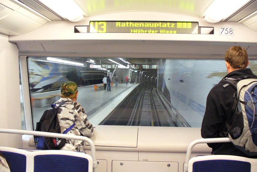 В метро и в трамвае такие меры не требуются, поскольку там кабины закрытые, а в нюрнбергском метро две линии из трех — вообще автоматические, без машинистов. Ты сам можешь стоять у лобового стекла и воображать себя машинистом: