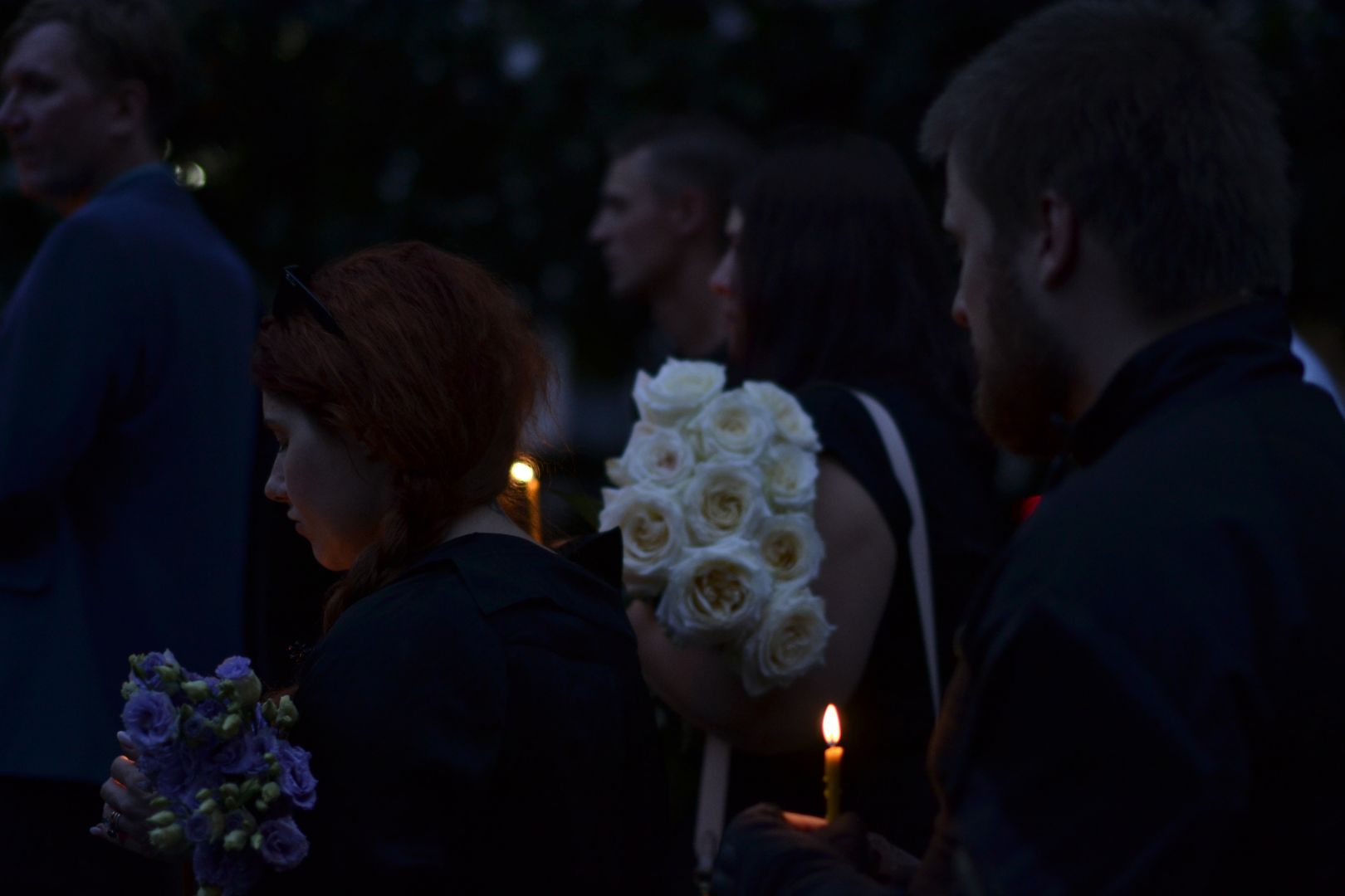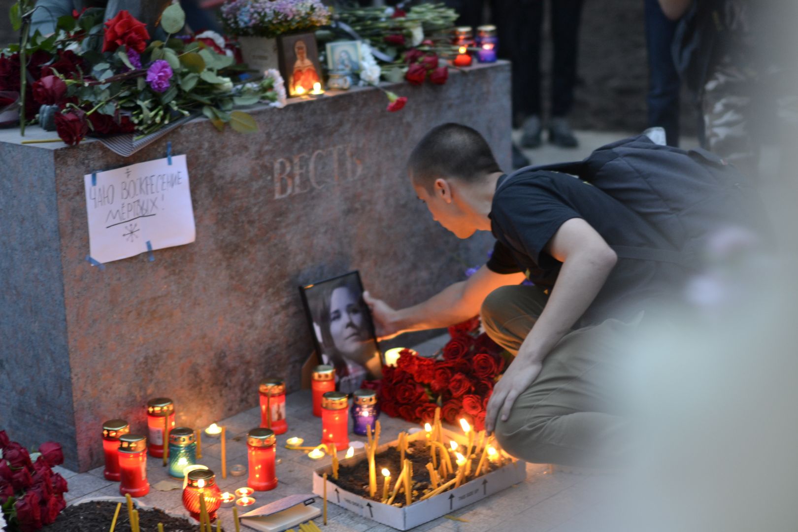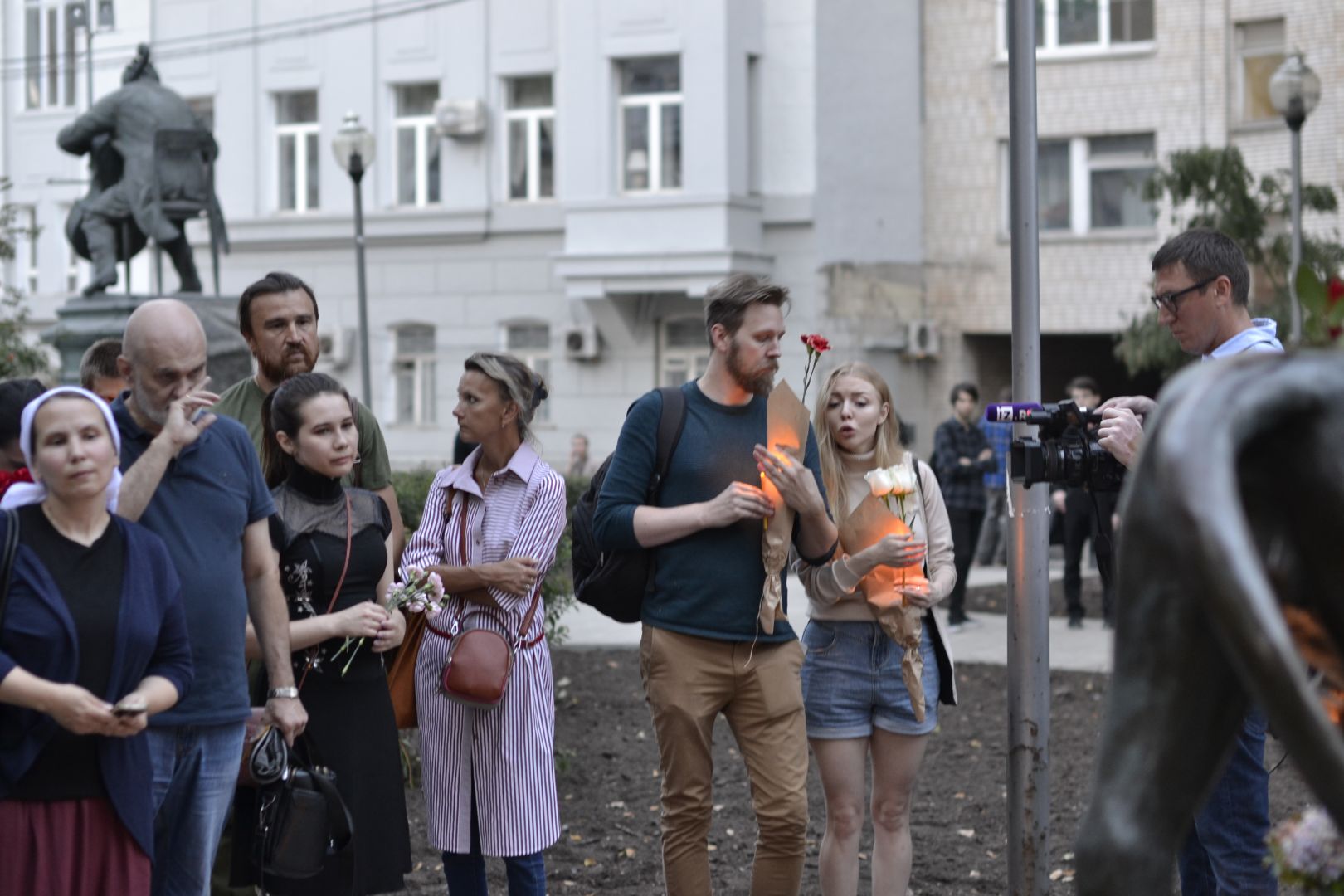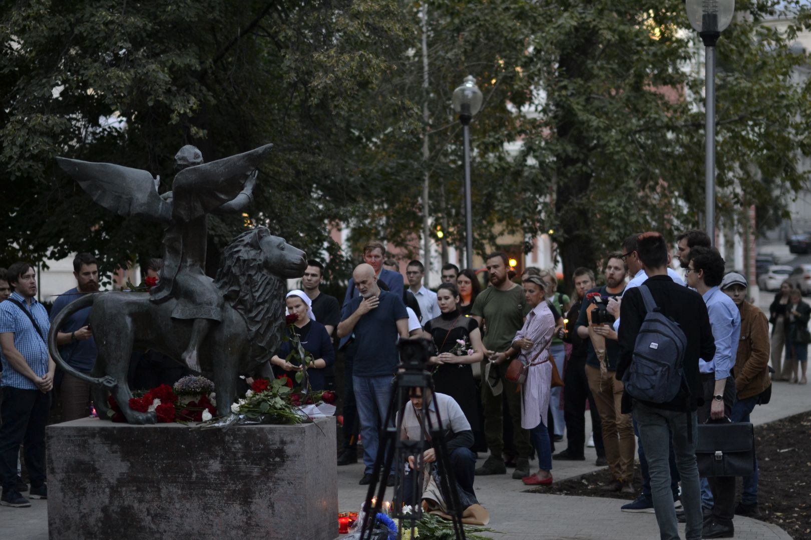Изначально гражданская панихида должна была состояться возле памятника Владимиру Крестителю, однако этому помешала полиция. Полицейские разворачивали всех желающих возложить цветы и направляли в другое место. В связи с этим было назначено новое место — сквер Мстислава Ростроповича. На памятной встрече присутствовало около 30 человек, а также батюшка, который на протяжении всей гражданской панихиды читал молитву об упокоении.