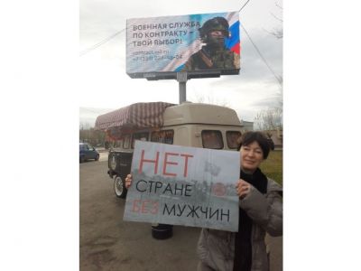 Самородская стояла с плакатом в нескольких местах у бюро ритуальных услуг и около баннера с призывом записываться на контрактную службу, пишет издание.