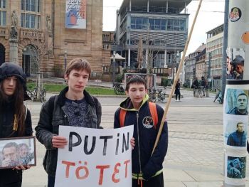 Вчера во Фрайбурге состоялась акция поминовения Алексея Навального, убитого диктаторским режимом, по прямому указанию Путина. К собравшимся подходили жители города, интересовались, кто-то фотографировал плакаты, написанные на немецком языке. Надписи взывали к немцам: "Putin ist der Hitler von heute" (Путин — это Гитлер сегодня), "Navalny wurde von Putin getötet" (Навального убил Путин), "Putin tötet" (Путин убивает).