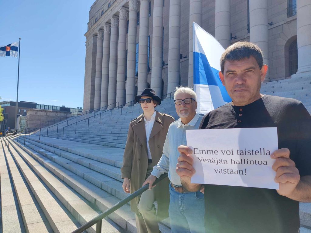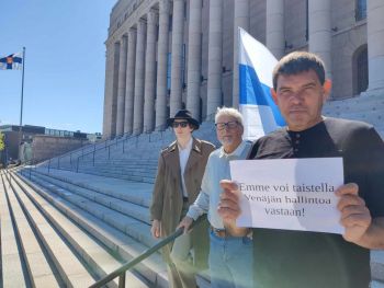 Поэтому единственный транспарантом на этом митинге был листок с надписью на финском языке: "Мы не можем бороться с российским режимом!".
