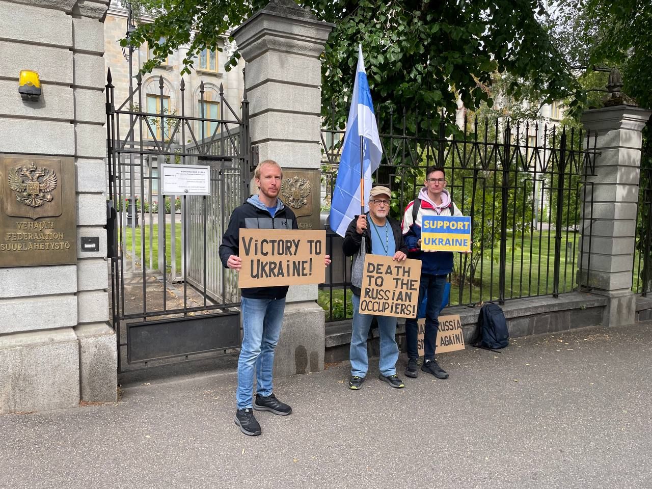 В День независимости Украины, 24 августа, у ворот посольства России в Хельсинки прошёл пикет, организованный организацией взаимопомощи политических беженцев в Финляндии – "VSY". Данный пикет разительно отличался от прошедших в разных странах парой дней раньше мероприятий, связанных с днем российского флага.